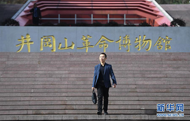 11月17日,毛浩夫在井冈山革命博物馆参观学习,丰富自己的讲解素材。新华社记者 申宏摄