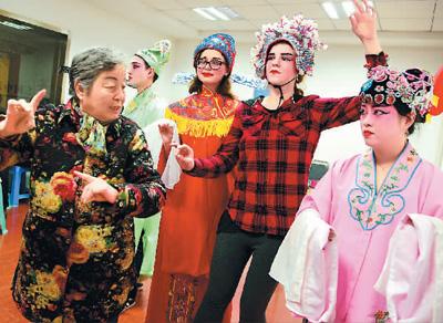 2017年12月29日,江苏大学来自俄罗斯、韩国、赞比亚等国的留学生来到江苏省镇江市七里甸街道万科社区戏曲社,在当地戏曲票友指导下体验京剧、越剧等戏曲唱腔和表演技艺,感受中国戏曲的魅力。石玉成摄(人民视觉)