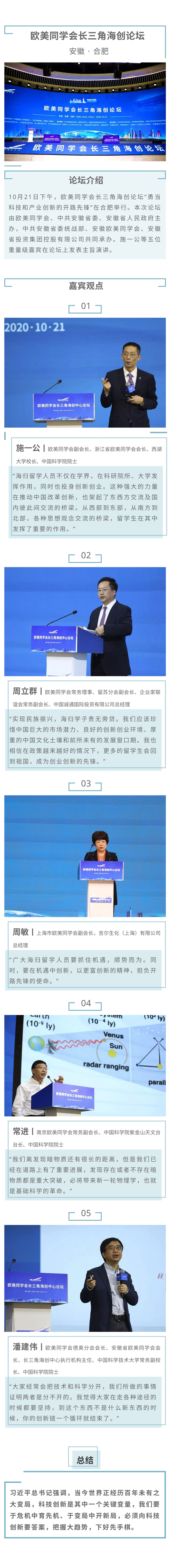 10月21日下午,欧美同学会长三角海创论坛“勇当科技和产业创新的开路先锋”在合肥举行。施一公等五位重量级嘉宾发表主旨演讲。
