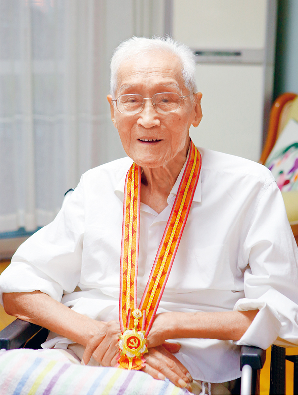 图为2021年7月1日拍摄的在家中的陆元九院士。中国航天科技集团有限公司供图 罗骁/摄