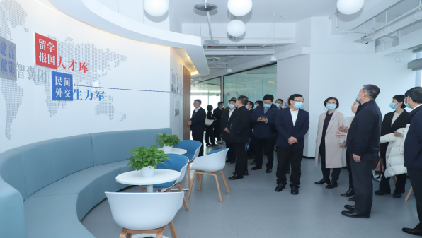 调研组一行前往“一带一路”商务中心,听取了相关情况介绍,现场详细了解了西南海创中心的规划布局、管理运营、建设步骤、政策体系以及数字同学会平台建设等内容。随后召开了西南海创中心工作推进座谈会,听取关于欧美同学会西南海创中心筹建工作进展情况汇报,两江协同创新区介绍了“科创+产业”发展情况,调研组专家和与会人员代表进行了交流发言。