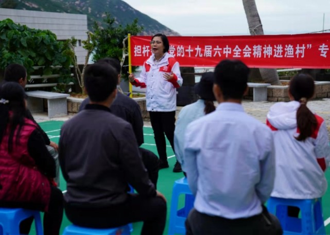黄静静在海岛宣传十九届六中全会精神。