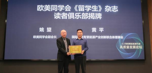 欧美同学会副会长、《留学生》杂志理事会理事长姚望,国际绿色智慧能源产业创新联合体秘书长滕跃,华夏双碳能源研究院执行院长王冰凝出席活动并致辞。活动中,姚望与国际绿色智慧能源产业创新联合体理事长黄平共同为《留学生》杂志读者俱乐部揭牌,并颁发读者俱乐部主任聘书。