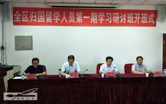 【本网讯】8月16日至22日,自治区党委统战部、宁夏欧美同学会(宁夏留学人员联谊会)在上海市社会主义学院举办第一期归国留学人员学习研讨班。来自全区部分高校、国有企业、科研院所及民营企业的30余位归国留学人员参加了学习研讨班。8月15日,学习研讨班的开班仪式在宁夏社会主义学院举行,自治区党委统战部常务副部长沈凡,宁夏师范学院党委书记、宁夏欧美同学会(宁夏留学人员联谊会)会长李星,宁夏社会主义学院副院长焦登相出席开班仪式。