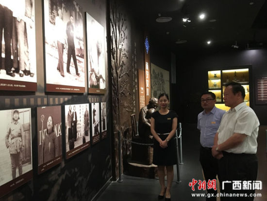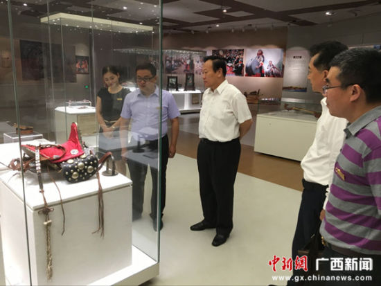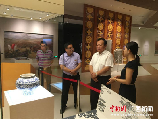 曹卫洲在广西国际文化交流中心工作人员的陪同下,参观南宁博物馆。
