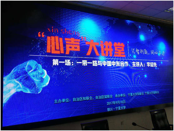 9月18日,宁夏欧美同学会(宁夏留学人员联谊会)举办首期留学人员“心声”大讲堂专题报告会。宁夏欧美同学会(宁夏留学人员联谊会)、宁夏大学及宁夏医科大学留学人员联谊会领导班子成员、常务理事,北方民族大学、宁夏师范学院、宁夏农林科学院、神华宁煤集团等单位的归国留学人员代表及宁夏大学部分师生共计300余人聆听了报告会。宁夏师范学院党委书记、宁夏欧美同学会(宁夏留学人员联谊会)会长李星主持报告会。