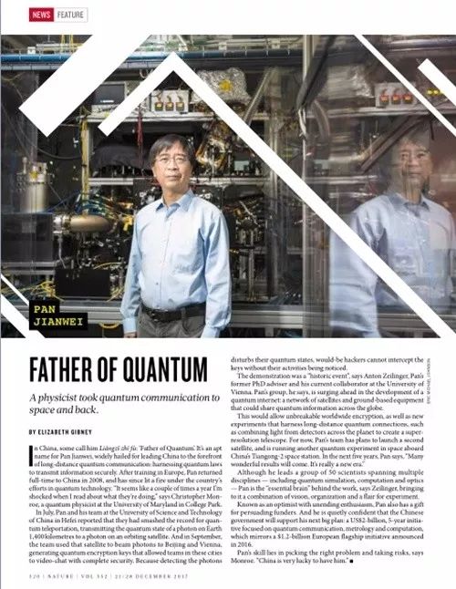 《自然》杂志潘建伟新闻特写截图《自然》杂志潘建伟新闻特写截图