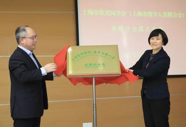 🔺盛焕烨、薛红为欧美同学会崇明分会揭牌