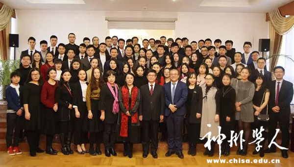 崔大使说,总书记叮嘱我们要弘扬留学报国的光荣传统,就是以报国为宗旨,以报国为使命,继承老一辈留学人员的光荣传统,胸怀大志,把个人理想与中华民族复兴伟业的中国梦联系起来,促进人类进步事业的发展。他还结合早年留学前苏联的经历,为大家讲述了一段难忘的留学故事和令人振奋的心路历程,在场同学无不感受到老一辈留学生的艰难与执着,也看到了老一辈留学生身上留学报国的坚定决心。