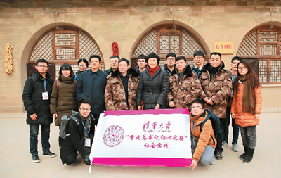 在梁家河知青旧居前,清华大学党委书记陈旭(二排右四)与本科生实践队合影。洛桑晋美摄