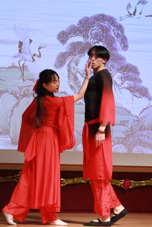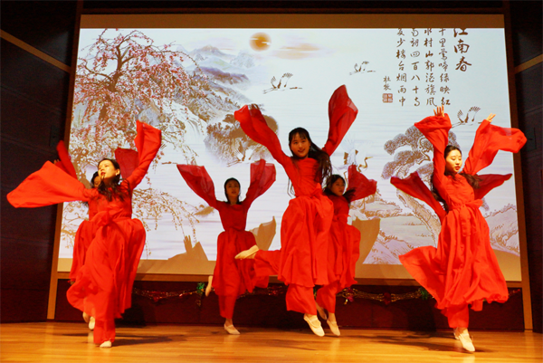随后,一群身着古典红色舞衣的少女少男带来的中国古典舞《大鱼》让人眼前一亮,翩如兰苕翠,宛如游龙举,妙曼中不失典雅,唯美中不失风韵。