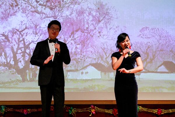 四位主持人中法双语的节目介绍串场既使在场华人倍感亲切,也让现场的法国朋友阵阵喝彩,笑语不断。充满惊喜的抽奖活动更让来到现场观看节目的观众充满了期待。赞助商们为现场观众提供了各种精美的礼品,美酒、香水、玉鼎、kindle电子书、羽毛球拍、Kenzo时尚产品以及中国电信赞助的国产品牌华为手机及手机卡,幸运的观众在抽到奖品后都兴奋不已。