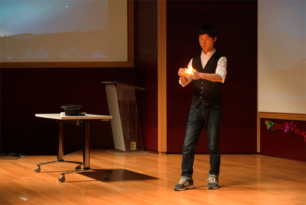 一位帅气的年轻小伙带来的《空手出牌》魔术惊艳绝伦,干净利落的手法让人眼花缭乱、震撼不已,让观众们都想向他请教魔术秘笈。