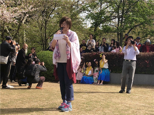 朱玲玲副会长兼秘书长代表总会祝贺活动顺利举行,对留日分会持之以恒开展植树赏樱活动、绵绵用力推进民间交流表示赞赏。