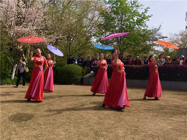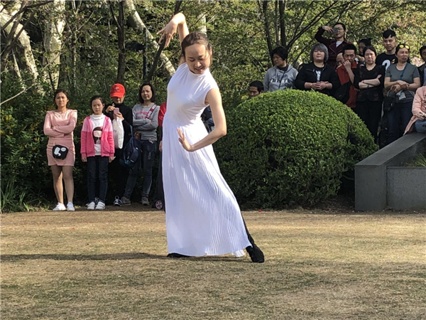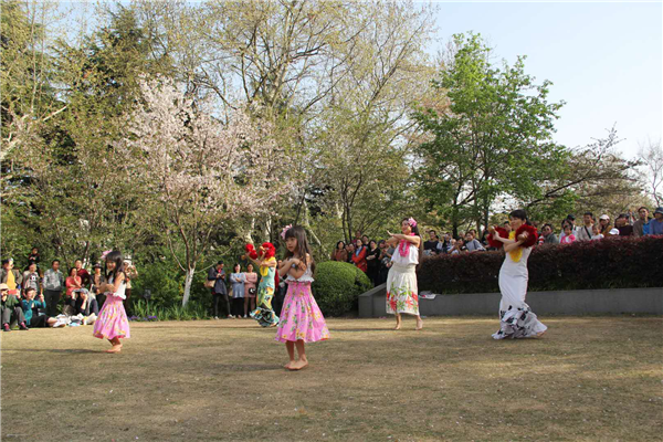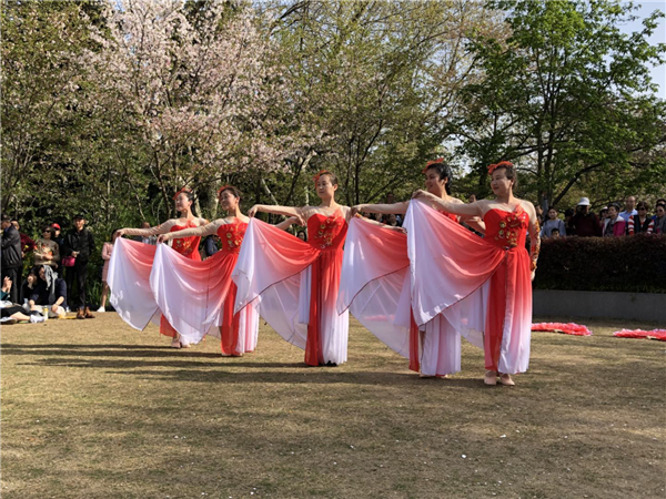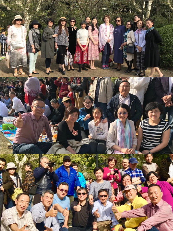 留日学长和日本友人、社会各界友好人士,在樱花盛开的鲁迅公园中日友好钟前席地而坐,载歌载舞,畅怀骋目,欢心驰神。上海财经大学女教授舞蹈队表演了舞蹈《江山美》、伞舞《东方情韵》、扇舞《又见北风吹》、独舞《刚好遇见你》,身姿曼妙绽放迷人光彩。日本友人带着小朋友表演的夏威夷草裙舞,时而欢快奔放,时而舒缓流畅,恰似海浪起伏,充满动感气息。上海师范大学音乐学院声乐系青年歌唱家、我会会员周燕燕演唱了《龙文》《玛依拉变奏曲》《青藏高原》,清澈甜美、温婉细腻、空灵飘逸的歌声,直教人如痴如醉。留日学长和日本友人一起吟唱的《茉莉花》《北国之春》《上海啊故乡》(改编自《大海啊故乡》,更是激起了在场的每一个人对祖国、对家乡、对生活的感恩和热爱。舞姿曼妙、衣袂飘飘,歌声嘹亮、婉转悠扬,高雅有序的活动、热烈友好的气氛、精彩纷呈的节目,吸引了不少游园市民驻足观望、积极参与,中日民间友好的种子深深播撒在现场每一个人的心田。