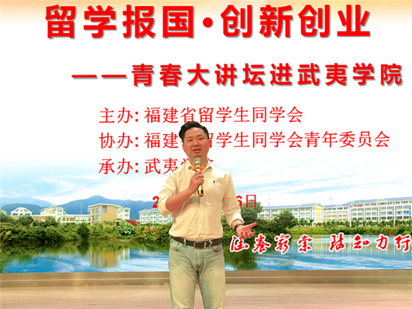4月26日下午,题为“留学报国·创新创业”的青春大讲坛在武夷学院开讲。福建省留学生同学会秘书长陈安,武夷学院副校长陈金瑞参加活动。