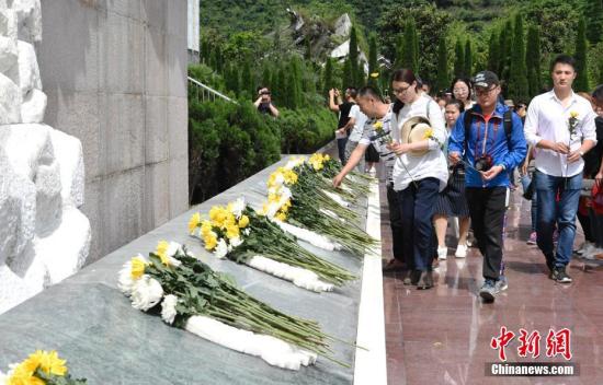 5月12日,四川省在汶川县映秀镇举行“5·12”汶川特大地震抗震救灾十周年纪念仪式,深切悼念在地震灾害中不幸罹难的同胞和在抗震救灾中捐躯的英雄。民众在地震遗址前敬献鲜花。安源摄
