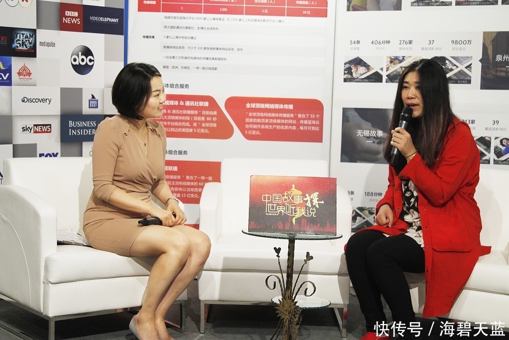 蓝海云平台国际传播负责人诺娜通过《中国故事探》邀请参与企业,面对面交流如何讲述自己企业的故事,并通过“一直播”平台现场直播。