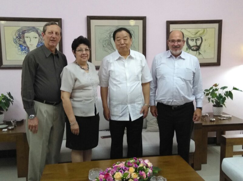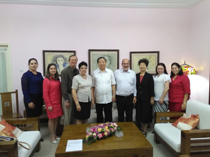 6月21日,应古巴驻华大使拉米雷斯邀请,第十二届全国人大法律委员会主任委员、欧美同学会拉美分会原会长乔晓阳到其官邸做客,会见了在华进行工作访问的老朋友古巴外交部亚洲司司长、前驻华大使白诗德,拉美分会副会长陈红娣陪同出席。
