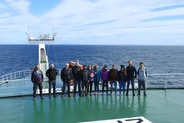船上有3名老师、1名博士后和7名博士研究生,还有6名技术人员和21名船员。科研人员中只有我来自中国,其余2人来自德国、1人来自印度,而大部分来自英国。大家的研究方向多为地质学,只有我和我的德国同门从事地震海洋学方向。