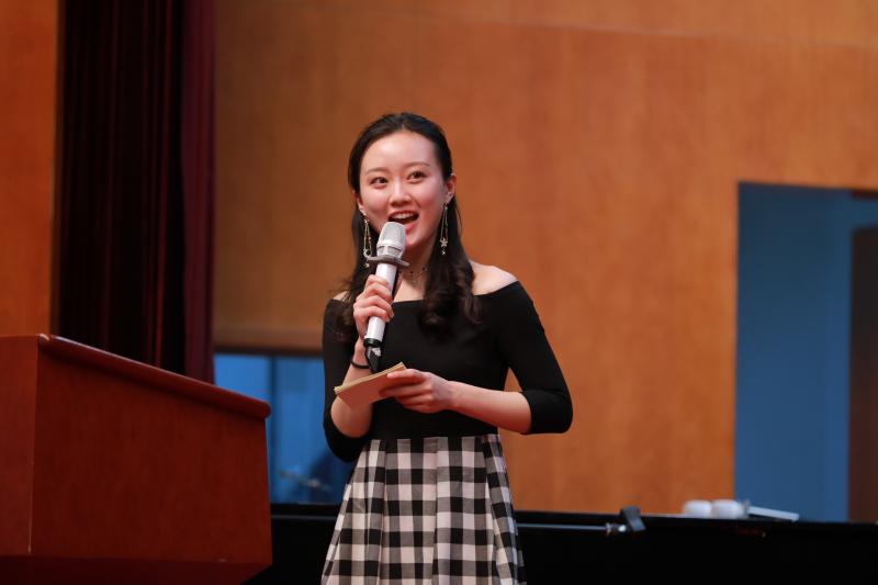 音乐会由中央音乐学院声乐系学生王迩茜主持,她以专业的知识详细介绍了演出的曲目内容和背景,让观众们得以了解每一首曲目的意境。