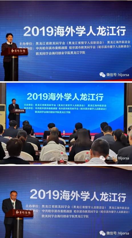 9月24日上午,2019海外学人龙江行活动在哈尔滨市和平邨宾馆隆重开幕。省委统战部副部长赵新宇,省欧美同学会副会长白树清、郑志成、解应龙,秘书长葛若菱等领导出席活动开幕仪式。