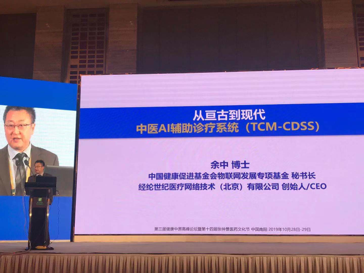 余中分围绕“中医学的核心思维方法、新时代大趋势、中医AI辅助诊疗系统(TCM-CDSS)、应用案例、新时代中医(结合西医)的发展展望”五个方面深入浅出地阐述了关于《从亘古到现代-中医AI辅助诊疗系统(TCM-CDSS)》的主题。余中表示,让每个基层医生都有全科医生助手机器人,每个家庭都有家庭健康机器人,是每一位医务科技工作者的使命。同时,余中相信智能医学将引领未来健康生活,在中医药领域,人工智能同样大有可为。