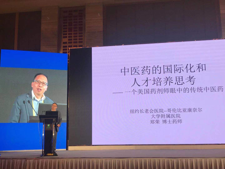 郑荣就《中医药的国际化和人才培养思考》作主题报告,讲述中医药行业在美国的发展状况并分享了自己对中医药国际化的看法。他认为,中医药的国际推广并不一要把中医药当做药来做,应当将其与更多外国人熟知的中华文化相结合,走进美国民众。郑荣表示,让中医药走出国门必须用当地老百姓能够接受的形式进行推广渗透,做到多样化。