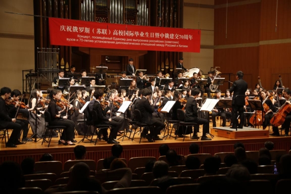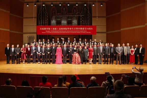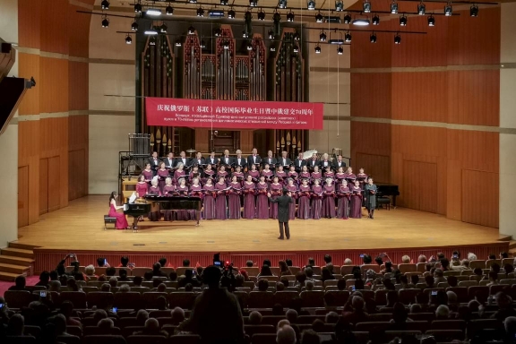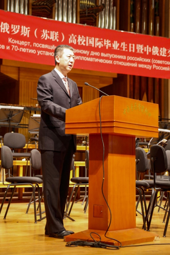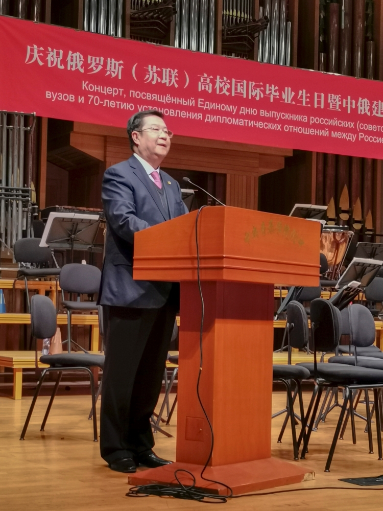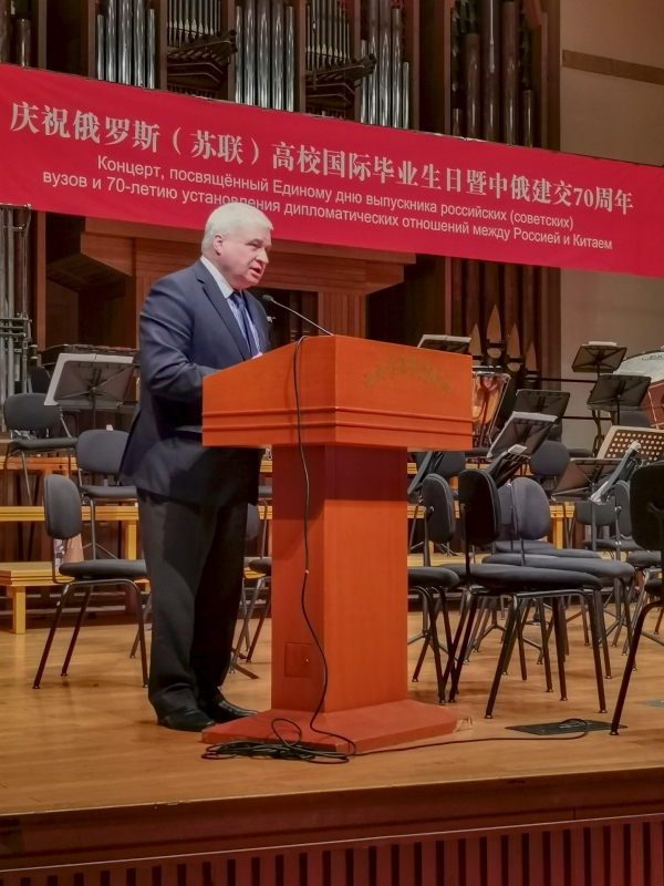 11月10日下午,中央音乐学院附中音乐厅内暖意融融。欧美同学会留苏分会和北京俄罗斯文化中心共同主办的庆祝“第六届俄罗斯(苏联)高校国际毕业生日暨中俄建交70周年”活动在这里举行。欧美同学会副会长、留苏分会会长、教育部原副部长刘利民,俄罗斯驻华大使安德烈·杰尼索夫,欧美同学会党组成员、副秘书长程洪明出席活动并致辞。北京俄罗斯文化中心主任塔玛拉·卡西亚诺娃,欧美同学会留苏分会名誉会长、中国民用航空局原局长刘剑锋,留苏分会原副会长、中国书刊发行业协会副会长、中国图书进出口总公司原总经理陈为江,中国驻俄罗斯原大使李辉,中央音乐学院附中党委书记王绍武,中央音乐学院附中副校长金京春参加活动。留俄(苏)老中青学子、北京俄罗斯文化中心及中央音乐学院优秀代表、社会各界国际友人等600余人欢聚一堂,共同庆祝这个激动人心的重要时刻。