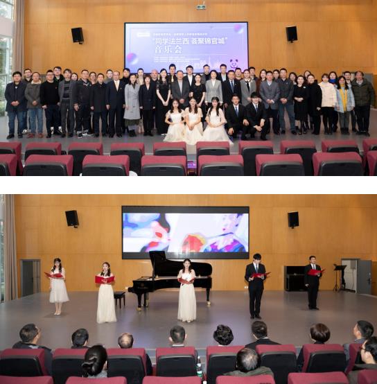 成立大会后,成都欧美同学学会留法分会以及成都大学中国-东盟艺术学院共同为来宾们奉上了“同学法兰西,荟聚锦官城”音乐会,有《成都欧美同学会留法分会赋》朗诵、小提琴二重奏、钢琴四手联弹以及男声独唱,将会场气氛推向高潮。