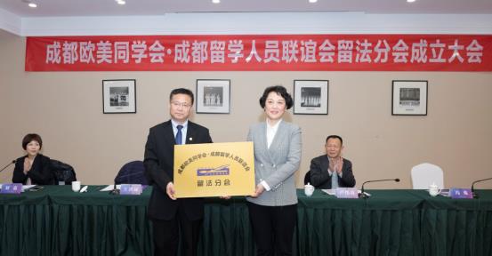 成都欧美同学会会长罗霞向留法分会会长王清远授牌