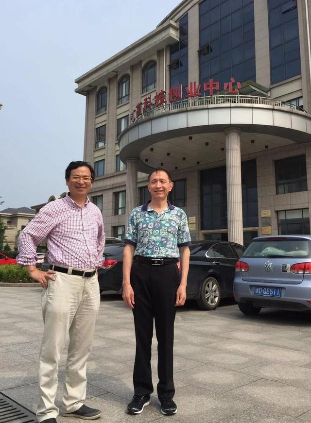 阮建忠(右)、陈侃章(本文作者)2019年夏在阮建忠公司门口。作者供图
