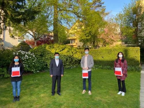 赵清华总领事再次提醒同学们,当前瑞士疫情防控措施初见成效,但切不可对新冠病毒掉以轻心,要树立“持久战”意识,毫不松懈地梳理日常学习生活中存在的潜在感染风险,切实加强个人防护。祖国无论什么时候都不会忘记身在海外的莘莘学子,总领馆始终是同学们的坚强后盾和温暖之家。