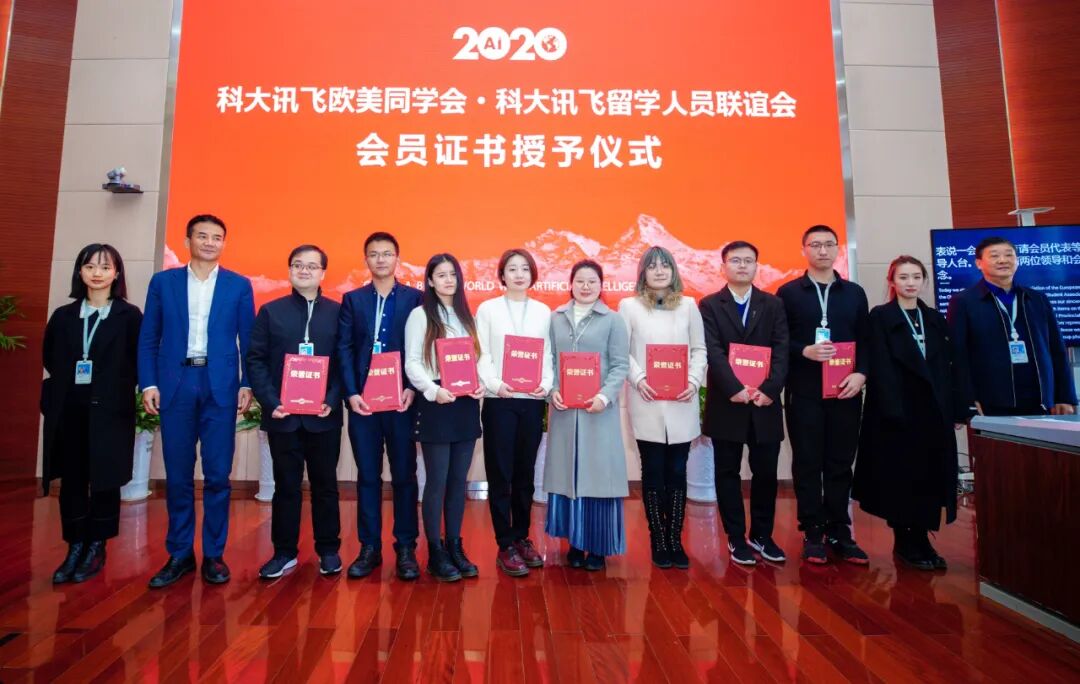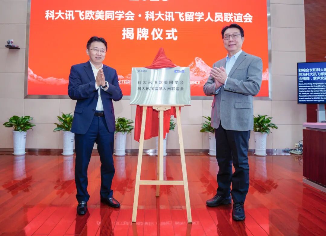 刘书瀚、段大为为科大讯飞欧美同学会揭牌,王琦、吴德海为会员代表颁授证书,许松亭代表安徽欧美同学会宣读关于同意成立科大讯飞欧美同学会(科大讯飞留学人员联谊会)的复函,段大为代表科大讯飞欧美同学会领导班子发言,与会嘉宾参观了科大讯飞人工智能展厅、党建展厅等。