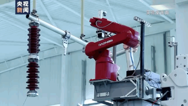 它的底盘是一辆履带式斗臂车,斗臂顶端安装机器人平台,斗臂伸展开来,可以将机器人平台送至10米以上的高处,灵巧的机械臂能准确定位需要作业的绝缘子和螺栓。