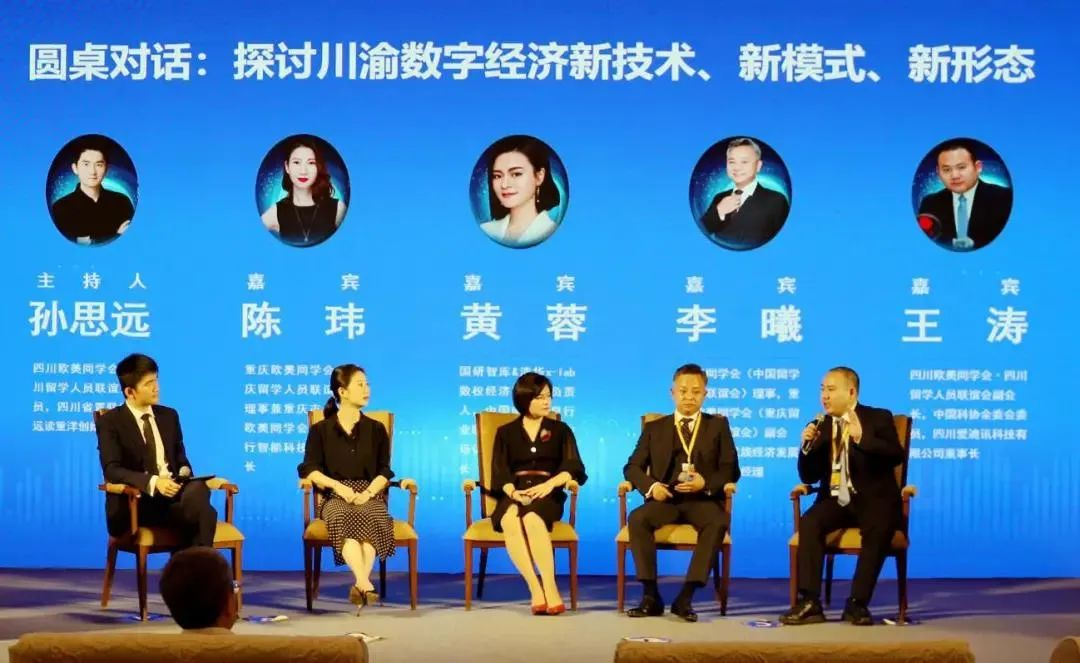 四川欧美同学会会员、四川省青联委员孙思远,国研智库&清华x-lab数权经济实验室负责人黄蓉,重庆欧美同学会理事兼重庆市北碚区欧美同学会会长陈玮,欧美同学会理事、重庆欧美同学会副会长李曦,四川欧美同学会副会长、中国科协全委会委员王涛参加圆桌论坛对话,深入探讨了川渝数字经济新技术、新模式、新形态。与会人员纷纷表示,这是一场非常好的研讨数字经济创新发展的论坛,既开拓了眼界,了解了数字经济的发展现状,又厘清了思路,为川渝数字经济创新发展指明了实施路径。