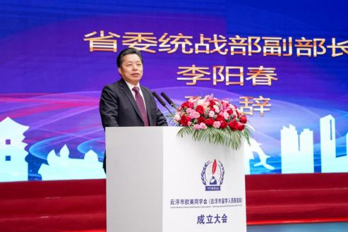 云浮市欧美同学会(云浮市留学人员联谊会)成立大会日前在云浮市云城区召开。广东省委统战部副部长李阳春,省欧美同学会副会长阎武,市政协党组书记梁丽娴,市委常委、统战部部长肖向荣,市人大常委会副主任阙妙丽,市各民主党派和统战团体代表等相关人员出席会议。
