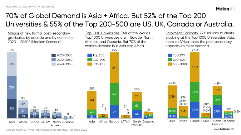 国际教育市场中七成留学生来自于亚洲和非洲。图片来源:HolonIQ报告