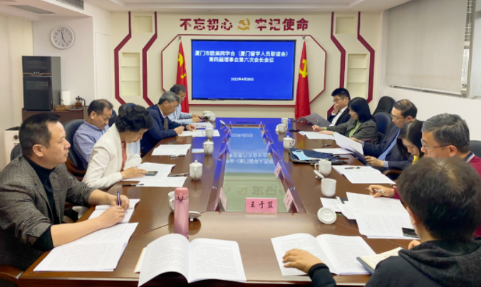 4月20日,厦门市欧美同学会召开第四届理事会第六次会长办公会,市政协副主席、市欧美同学会会长王焱,市欧美同学会副会长王于蓝、叶英、白雪卿、李啸萍、张云、郑政、程璇、曹敏杰和秘书长何杰出席会议。会议由王焱主持。