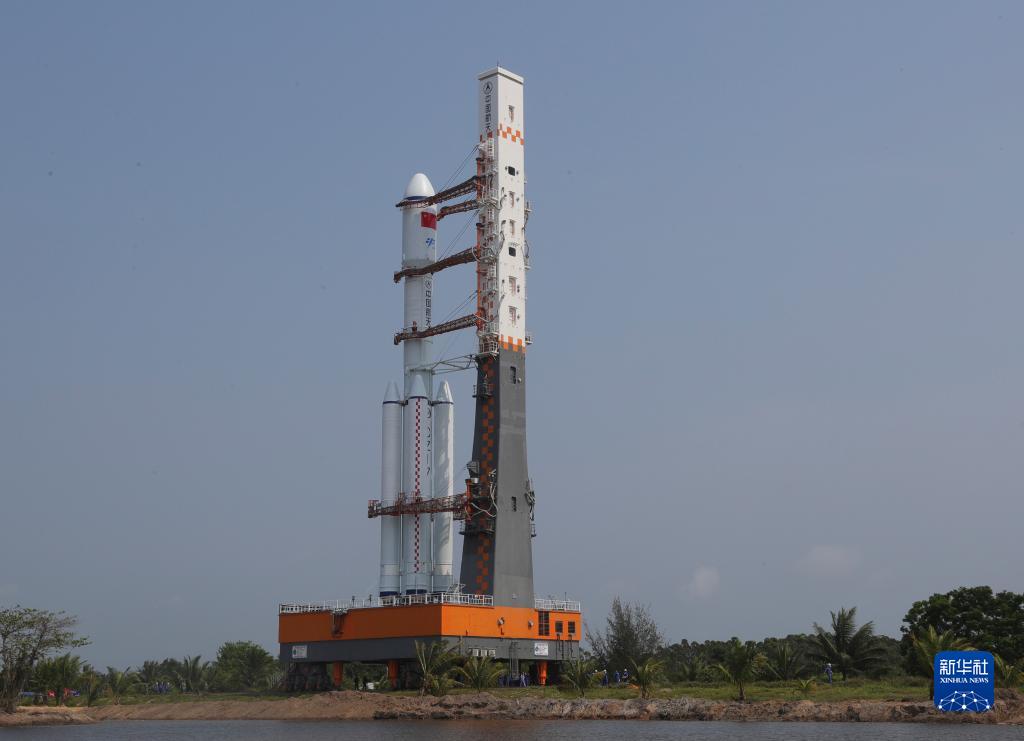 5月7日,天舟六号货运飞船与长征七号遥七运载火箭组合体在垂直转运中。