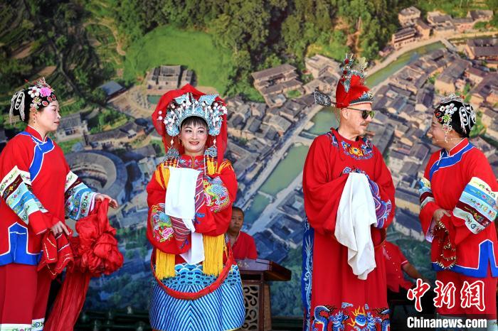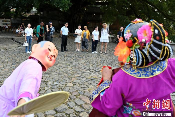其间,当地民间艺术家还为代表团表演《娶亲抛绣球》《公背婆》等戏剧。代表团中的汤姆·蒂思利是美国打击乐演奏家,他兴致勃勃地参与到表演中,热情互动。“这种艺术表现形式很特别,能和当地艺术家面对面交流和配合,很开心。”汤姆称深感当地不仅有深厚历史和文化,还有美丽景致相匹配,让他一饱眼福,惊喜多多。