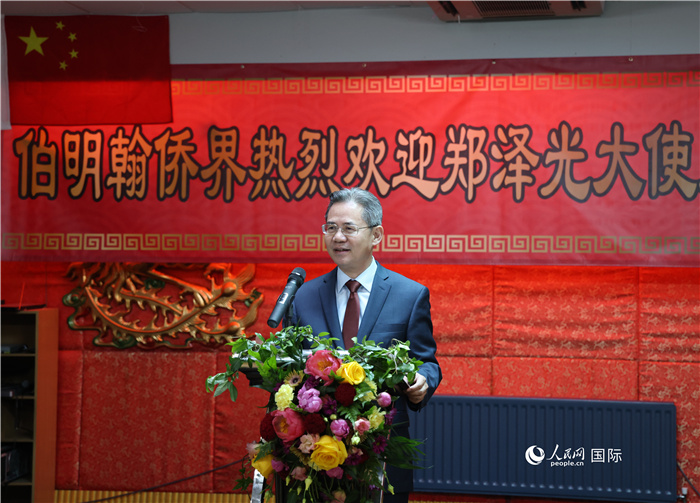 中国驻英国大使郑泽光提出希望伯明翰地区的侨胞及各个社团能够继续做中华文化的传播者、中国故事的讲述者、互利合作的推动者、民间友谊的促进者。人民网记者 邢雪 摄