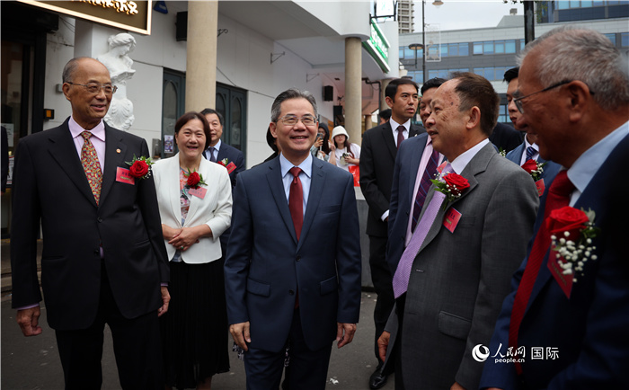 郑泽光大使在当地侨领的陪同下走访侨社。人民网记者 邢雪 摄