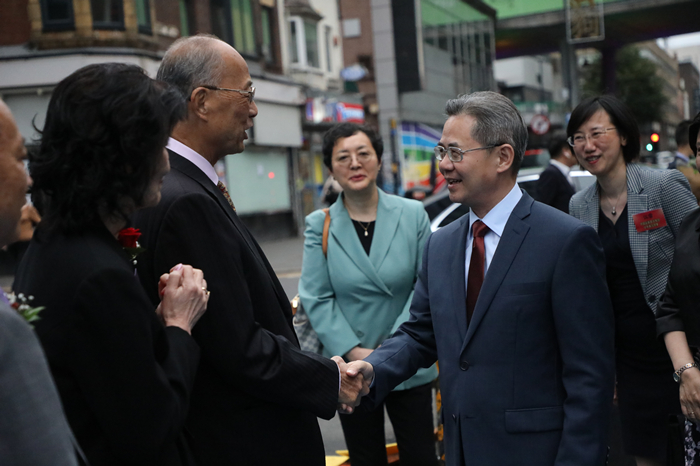 郑泽光大使受到伯明翰侨界的热烈欢迎。人民网记者 邢雪 摄