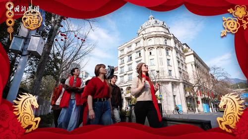2月11日,浙江丽水,侨乡青田年味正浓,意大利姑娘玛丽携多国友人共度小年。沉浸式打卡欧陆风情街、吃年夜饭、看非遗表演,中西风情碰撞出别样新春烟火气。