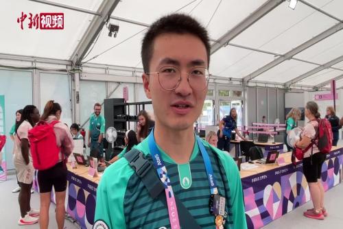 当地时间7月22日,在法国巴黎奥运村的入口处,一志愿者正在热情欢迎各国运动员,他叫张昭宇。他介绍自己每天的工作就是接待世界各地的运动员入住奥运村。在工作中,张昭宇掌握了一项特殊技能,就是会用五种语言欢迎各国运动员。